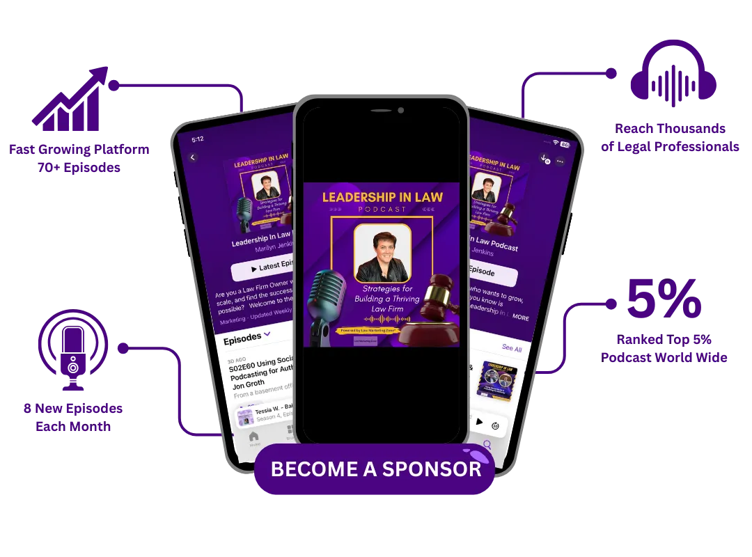 The Leadership In Law Podcast, hosted by digital marketing strategist Marilyn Jenkins, reaches an audience of thousands of law firm owners every month. Ranked in the top 5% of podcasts worldwide, this fast-growing show delivers high-impact leadership insights that law firm leaders rely on to scale, lead, and thrive.
